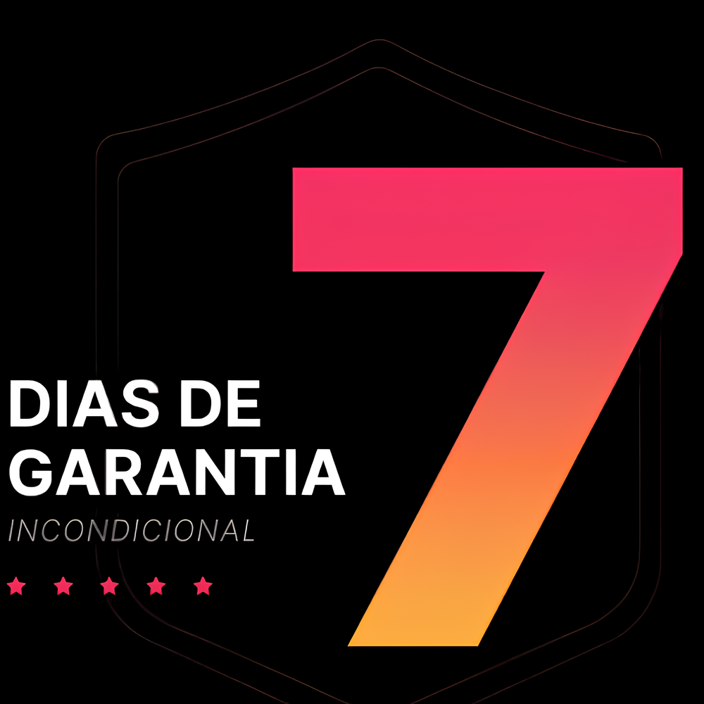 Acredito tanto na qualidade do que entrego que ofereço garantia incondicional: se, por qualquer motivo, você sentir que não é para você, basta um simples pedido e devolvemos 100% do seu investimento. Sem letras miúdas, sem burocracia. O risco é totalmente meu.